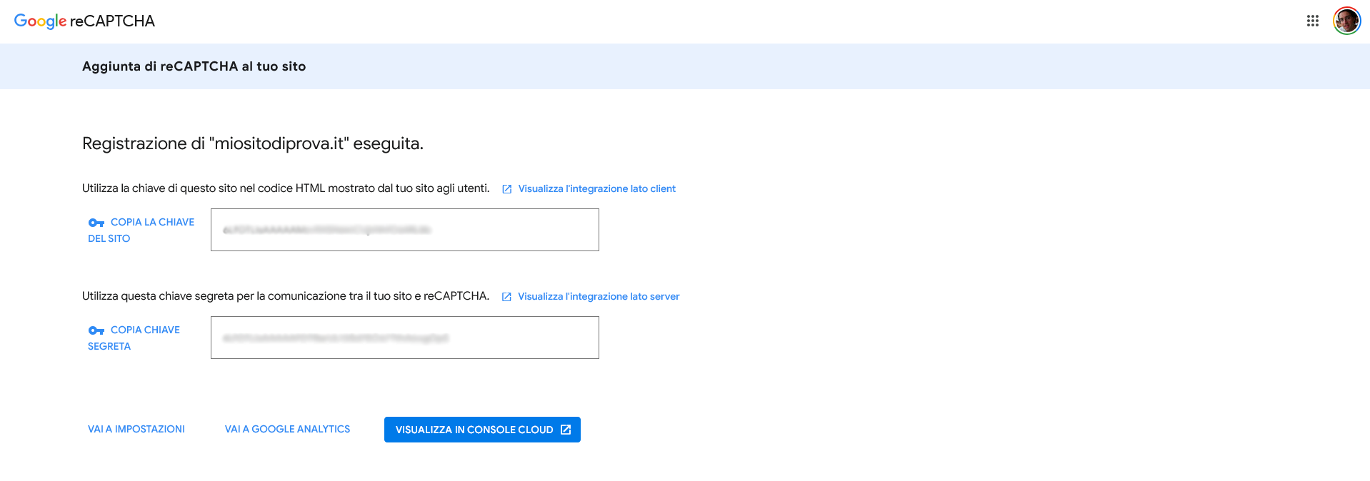 È la pagina ufficiale di Google per creare le chiavi.